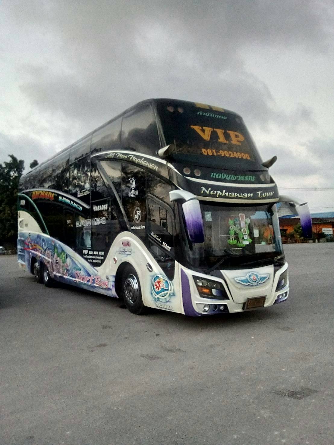 รายละเอียด สปอร์ตบัส 10 ล้อของนพวรรณทัวร์ โทนสีม่วงสบายตา คาดหน้ารถสีเหลือง เบาะนั่งภายใน 52 ที่นั่งแบบใหม่นั่งสบาย ปรับเอนพักผ่อนได้ พร้อมพนักพักมือและเบาะรองน่อง ระบบความบันเทิงเต็มรูปแบบ ทีวี LCD จอแบนขนาดใหญ่จุใจถึง 3 จอ เครื่องเสียงครบครันทั้งภายนอกและภายใน พร้อมระบบคาราโอเกะ ห้องเก็บกระเป๋าสัมภาระขนาดใหญ่ ห้องน้ำในรถ เดินทางสะดวกสบายทุกที่ทั่วไทย