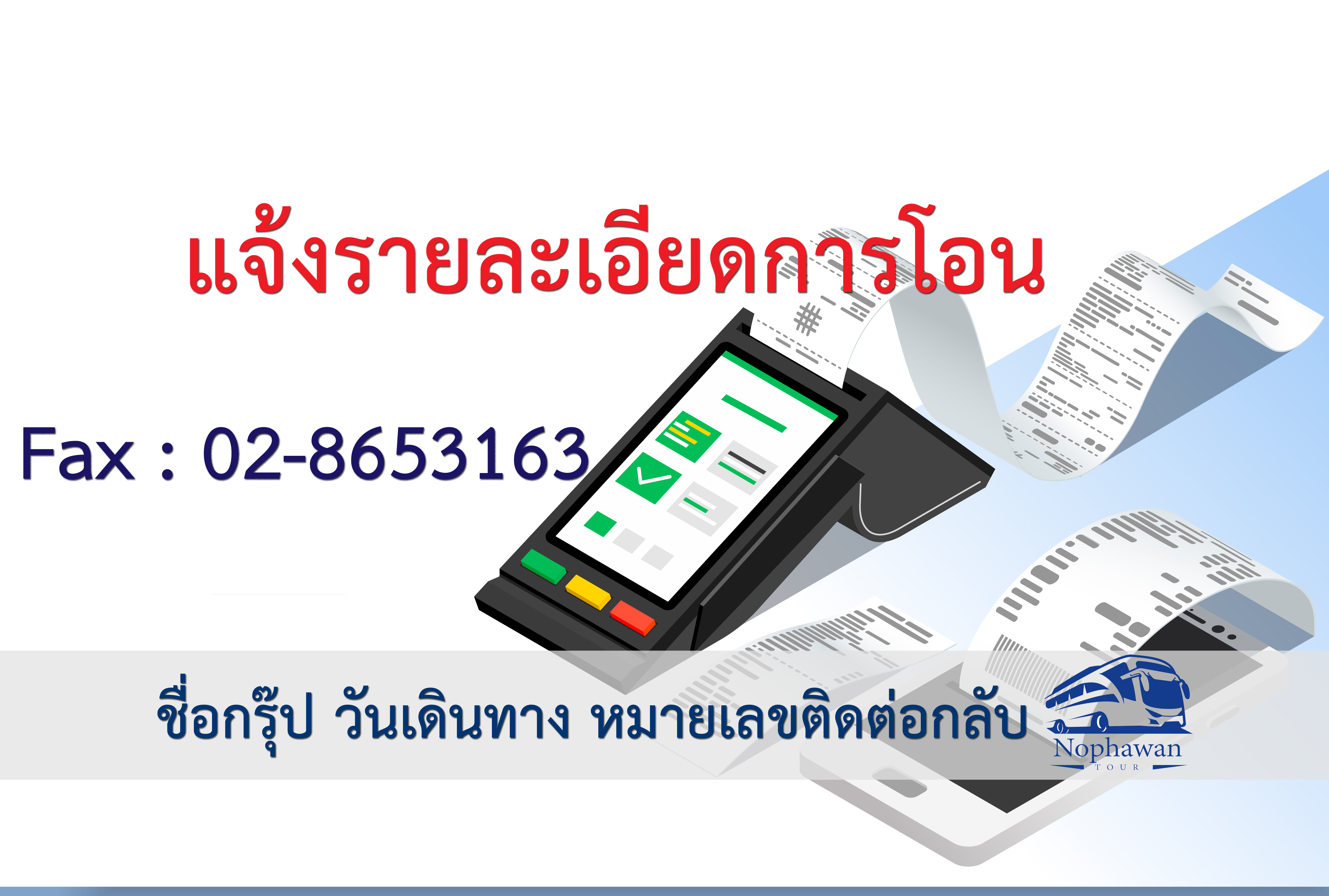 โปรดระบุชื่อกรุ๊ป วันเดินทาง และหมายเลขติดต่อ เพื่อประโยชน์ของผู้มัดจำเป็นสำคัญ